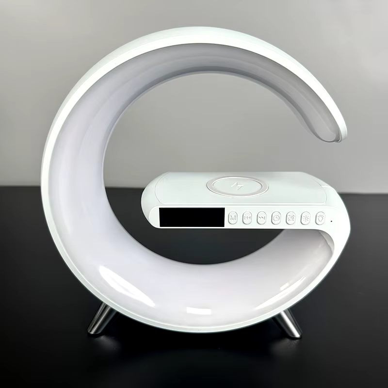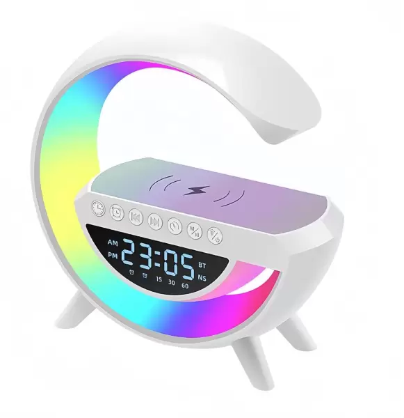 G Shape Clock RGB Light Bedside Lamp with Bluetooth Speaker & Wireless Charging